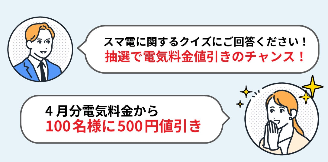 クイズに正解した方の中から、抽選で「4月分電気料金」値引きをプレゼントいたします。